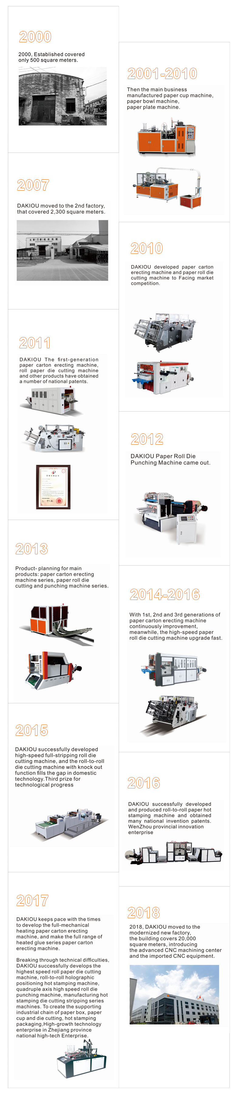 中國·瑞安市大橋包裝機械有限公司成立于2002年,是一家集科研、制造、銷售及服務為一體的高新技術企業。公司專業生產全清廢卷筒平壓平模切機、高速卷筒平壓平模切機、全自動立體紙盒成型機(上膠和熱粘) 、紙杯(碗)機、紙盤機等紙容器自動化設備。自成立以來,公司不斷深化產品生產線,對產品精益求精,取得數十項發明和實用新型專利,全面通過歐盟CE質量安全認證。榮獲得省市科技(創新)型企業,國家高新技術企業。